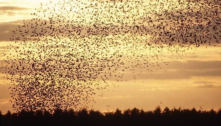 Spreeuwen zwermen krijsend